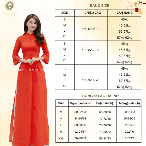 Áo dài tơ thiết kế 5 tà đính nút bọc màu cam cháy, vải tơ lót lụa cao cấp