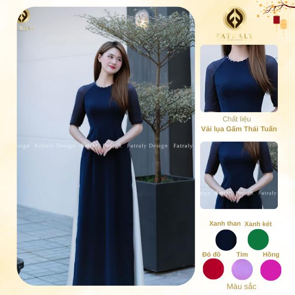 Áo dài thiết kế lụa phối voan tơ cao cấp, chất liệu mềm mại và sang trọng phù hợp nhiều dịp