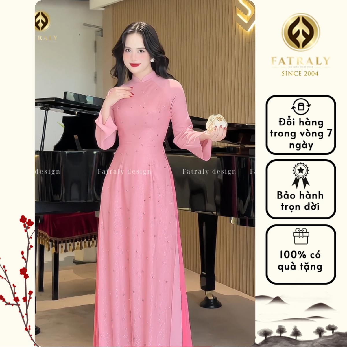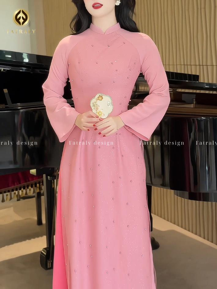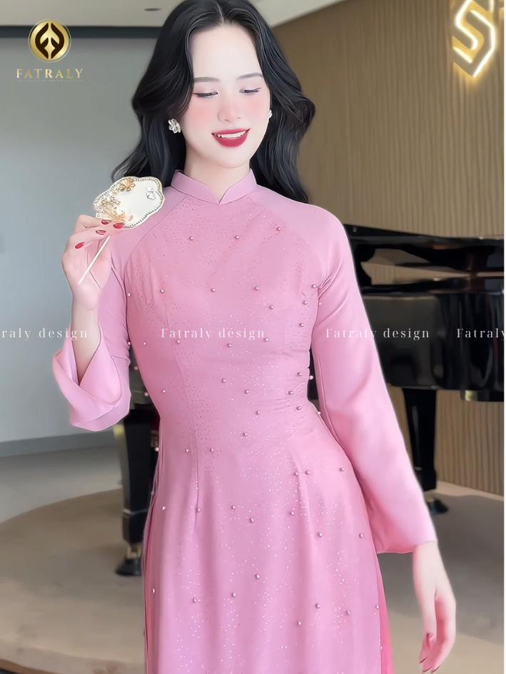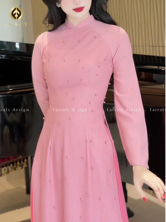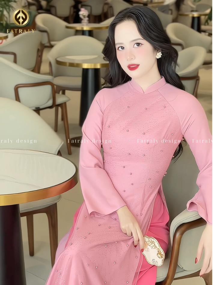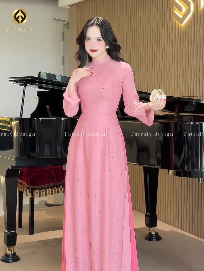 Áo dài hồng ngọt ngào lấy cảm hứng từ áo dài truyền thống Việt Nam, kết hợp đường nét hiện đại, phù hợp với nhiều dịp lễ và sự kiện.