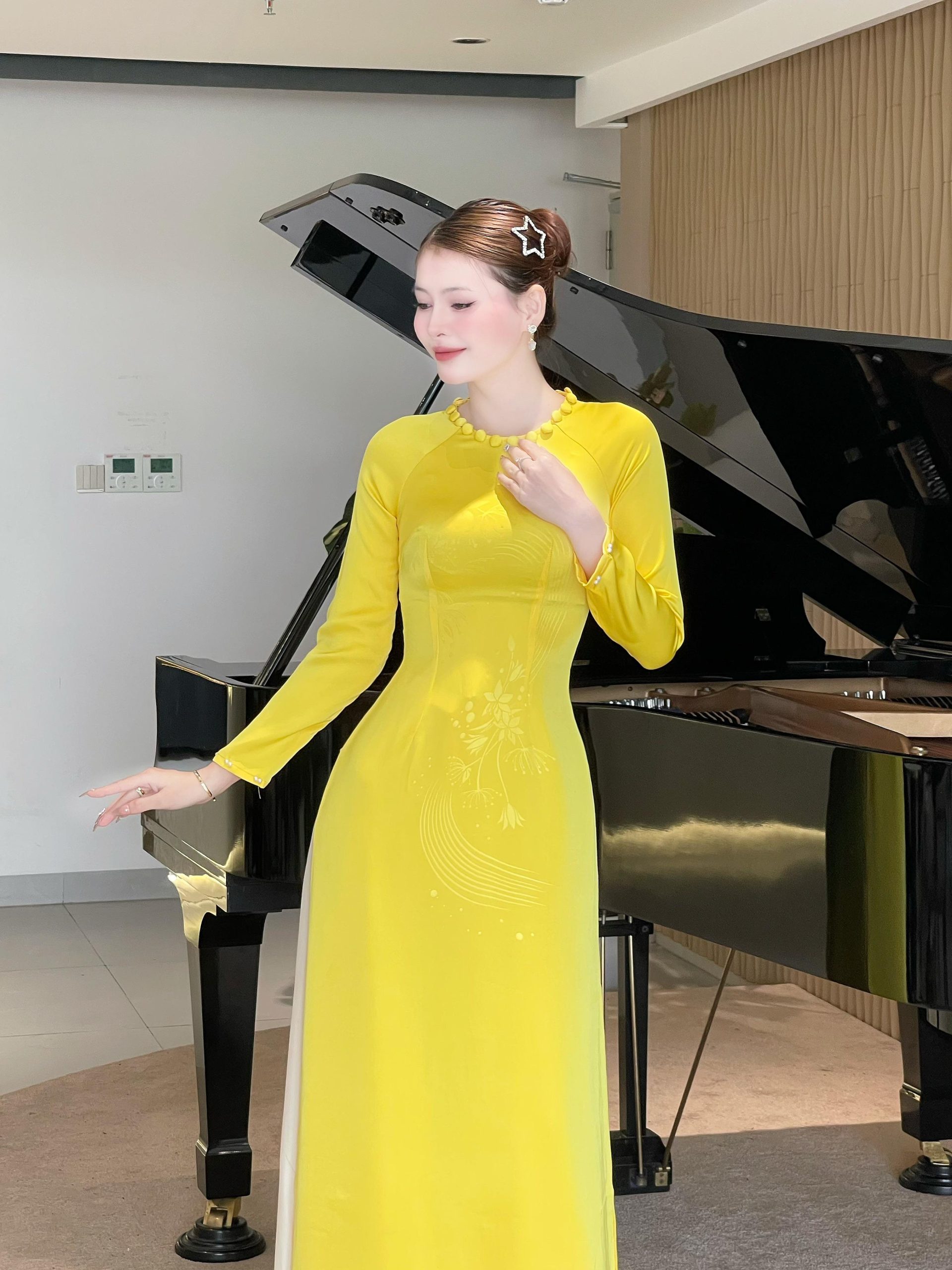 🌟 Áo dài được thiết kế với hoạ tiết dập nổi độc đáo, sáng tạo. Hoạ tiết này tạo điểm nhấn, làm cho áo dài trở nên nổi bật. 🌟