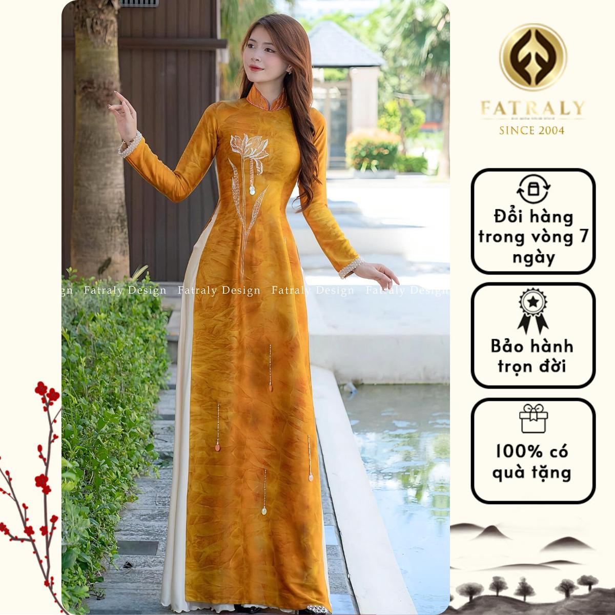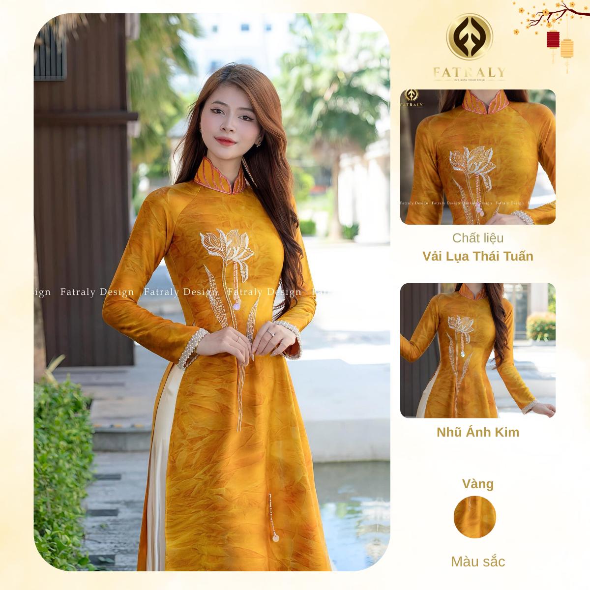 Áo dài lụa Thái Tuấn cao cấp nhũ ánh kim hoàng gia chất liệu mềm mại thiết kế tinh tế sang trọng phù hợp cho dịp đặc biệt