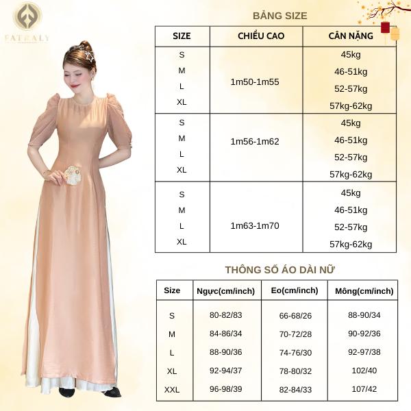 • Chất liệu cao cấp: Chất lụa cao cấp với bề mặt mịn mượt như nước, có độ bóng nhẹ tự nhiên. Khả năng giữ form cực tốt nhưng vẫn đảm bảo sự bay bổng, mềm mại trong từng bước đi. Đặc biệt, chất vải thoáng mát giúp nàng tự tin du xuân cả ngày dài mà không lo bí bách