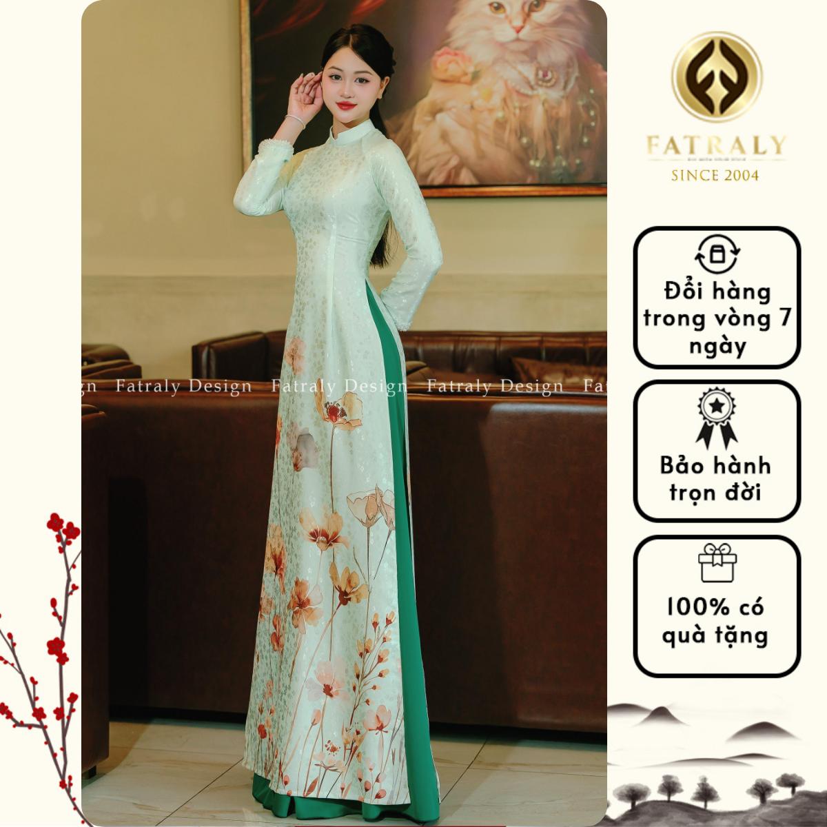 ✨ Tên Sản Phẩm: Fatraly – [ADTK 113] Áo dài nữ lụa tơ tằm vân gấm màu xanh nút bọc trước ngực thời trang nữ tính và dịu dàng