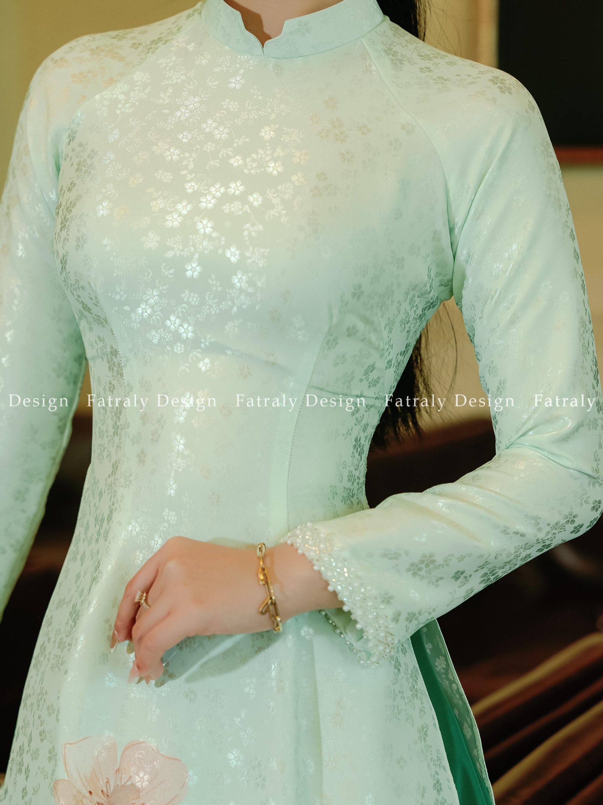 - Điểm Nhấn: Nút bọc trước ngực tạo nên chi tiết độc đáo, tăng tính thẩm mỹ cho áo dài. Nút bọc giúp áo dài trông sang trọng và đẳng cấp hơn.