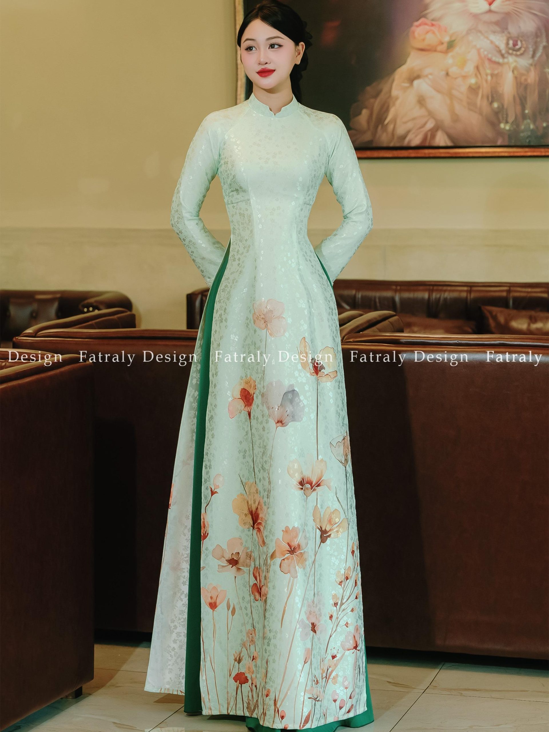 - Thiết Kế Nữ Tính: Áo dài tơ tằm vân gấm màu xanh mang đến vẻ nữ tính và dịu dàng. Màu sắc tươi sáng giúp bạn nổi bật và thu hút sự chú ý.