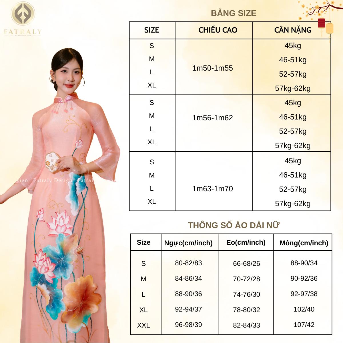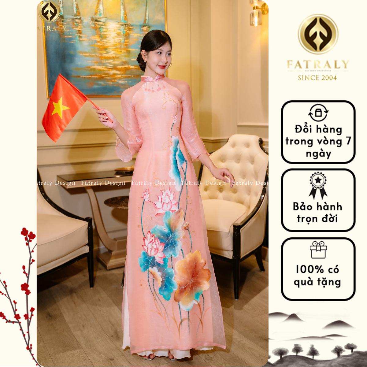 Áo dài nữ Fatraly kết hợp hoàn hảo giữa thiết kế tinh tế và chất liệu cao cấp. Được làm từ vải tơ cao cấp, lót lụa Thái Tuấn, kết hợp hoạ tiết vẽ tay. Sản phẩm mang lại vẻ đẹp kiêu sa và cảm giác thoải mái cho người mặc.