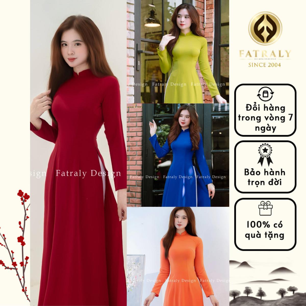 Áo dài nữ trơn vải Lụa Thái Tuấn cao cấp của nhà Fatraly, chất liệu mềm mịn, size 45kg-68kg