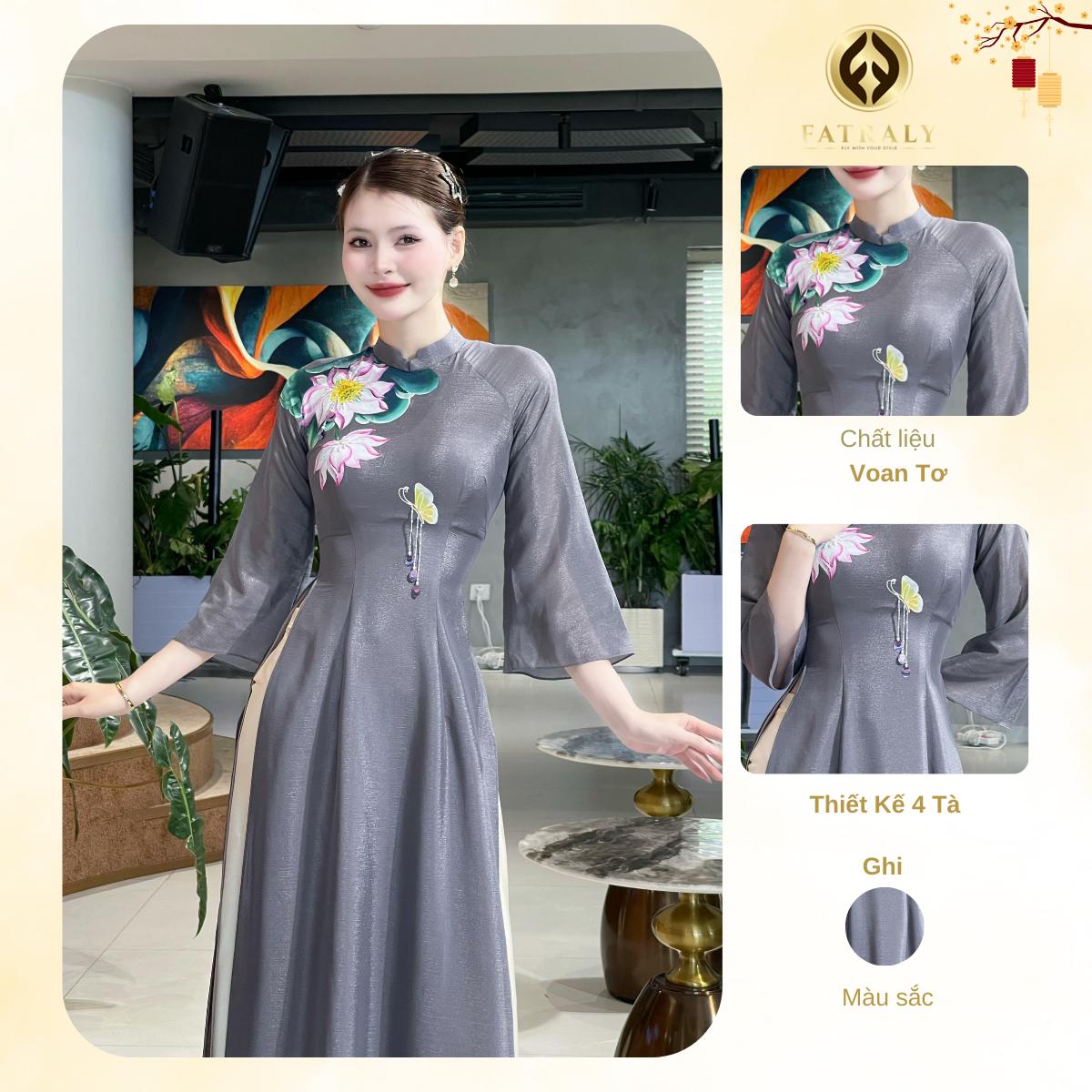 ✨ Áo dài Fatraly [ADTK 17] được thiết kế với 4 tà, tạo nên vẻ ngoài sang trọng. Màu ghi tinh tế giúp áo dài trở nên nổi bật và thu hút. 🌟