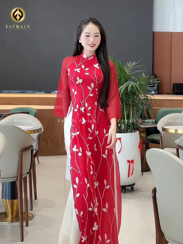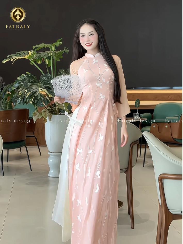 Áo dài Fatraly – ADTK50 có cổ áo thiết kế mới, tôn lên vẻ đẹp thanh lịch và sang trọng. Thiết kế này giúp bạn tự tin khoe khéo vóc dáng quyến rũ.